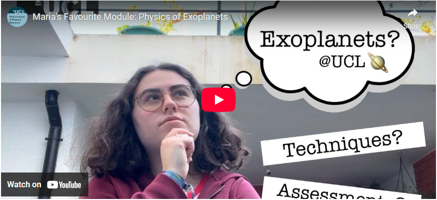 UCL Physics and Astronomy graduate student Maria talks about her favourite module on the physics of exoplanets! Find out about the methods used to detect exoplanets, and what information can be explored through using these techniques.